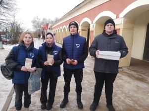 Волонтёры Победы Киржачского района приняли участие во Всероссийской акции «Блокадный хлеб»! Добровольцы вышли на улицы города и раздали горожанам буклеты с информацией, а также предлагали символ акции - кусочек хлеба весом 125 грамм.