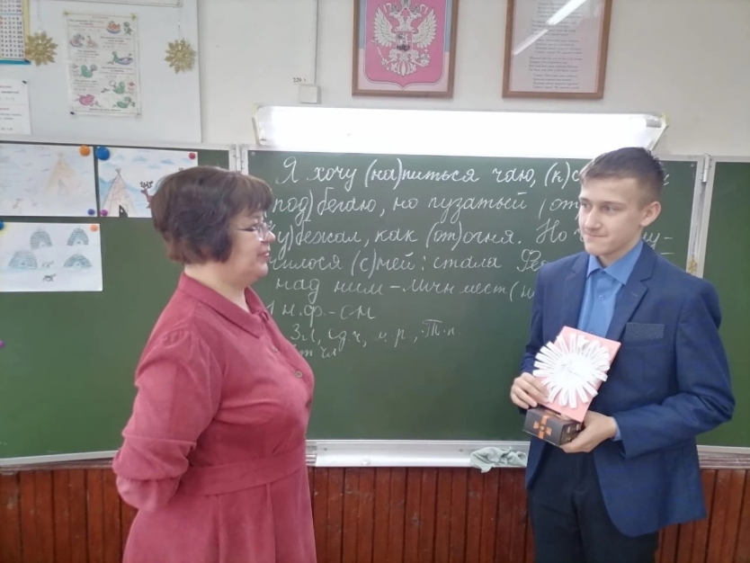 Ребята поздравили педагогов школы, чьи сыновья и мужья в данный момент находятся в зоне СВО. Поздравления получили девочки, чьи отцы отдали свои жизни, защищая наше мирное небо.