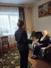 Сотрудники отдела по делам молодёжи и туризма, члены общественного движения «Волонтёры Победы» Судогодского района поздравили жительницу района, труженика тыла Великой Отечественной войны, ветерана труда - Репину Анну Ивановну, с этим добрым, весенним праздником, пожелав ей крепкого здоровья, заботы и любви близких людей!