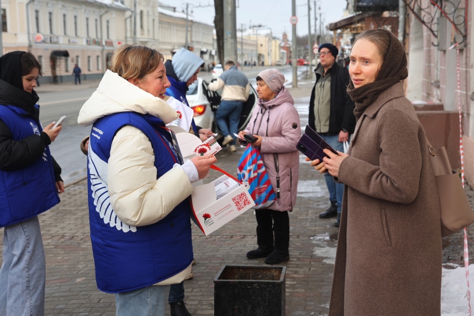 Первую гвоздику в регионе получил заместитель Губернатора Владимирской области Владимир Алексеевич Куимов. Он подчеркнул важность и значимость данной акции и выразил благодарность всем волонтёрам за их деятельность: «Раздавая эти гвоздики, будем поздравлять жителей Владимирской области с наступающим праздником Великой Победы, с 80-летием. Ветеранов остается очень-очень немного, это еще раз привлечение внимания к тому что мы должны не проходить мимо».