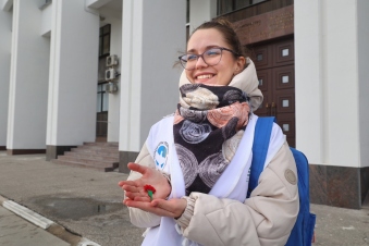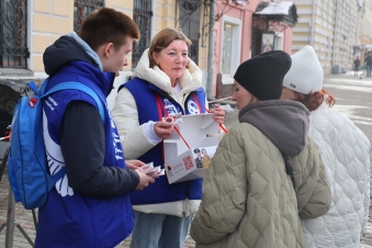 Волонтёры обменивают значки на денежные пожертвования, которые будут направлены на оказание медицинской помощи ветеранам различных категорий.