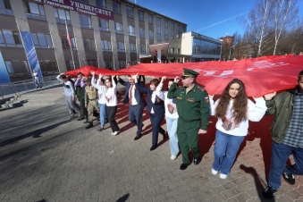 Волонтёры Победы Владимирской области выступили соорганизаторами сопровождения акции. Ребята с большой честью и гордостью за свой народ развернули полотно флага на трех ключевых площадках города.