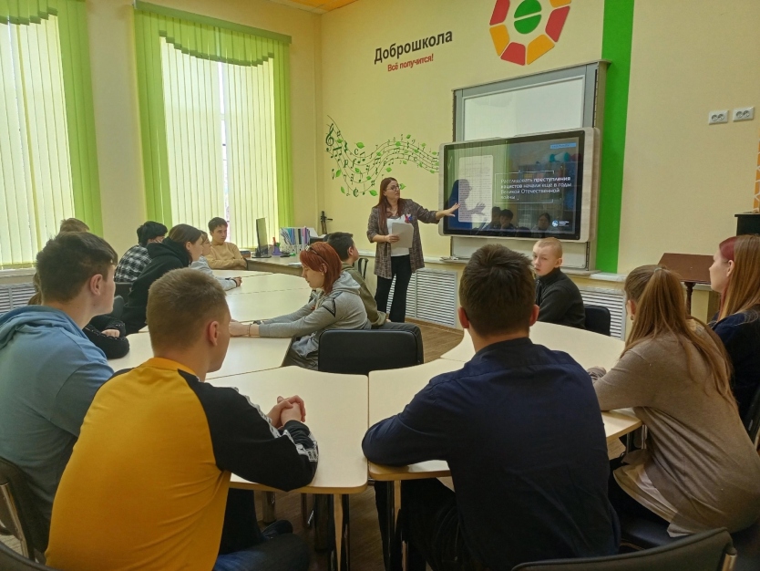 Ребята узнали больше о том, что на самом деле происходило в нацистских концлагерях, о самих преступлениях нацистов и их приспешников, так и о справедливом возмездии, которое их постигло даже спустя десятилетия. Волонтёры рассказали не только об исторических фактах, но и поделились воспоминаниями ветеранов, которые лично находились в лагерях и подвергались пыткам и издевательствам немецких захватчиков.