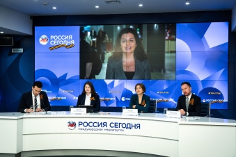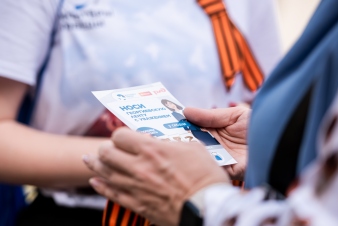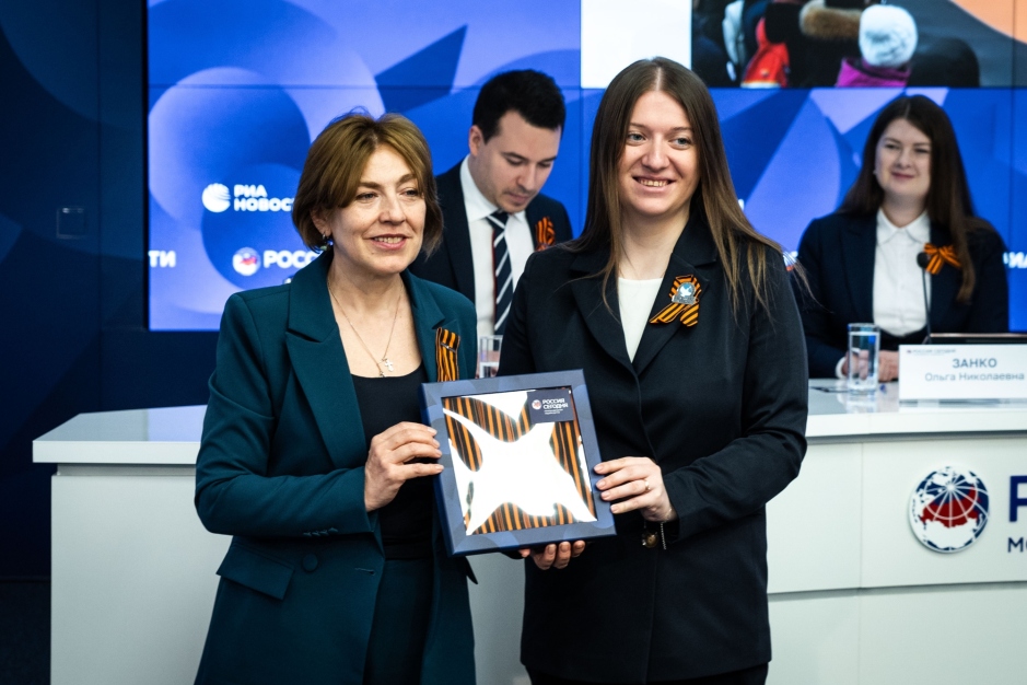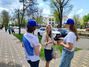 В формате видеомоста из Республики Крым к пресс-конференции подключились Герой России, участник программы «Время героев», заместитель председателя Государственного комитета молодежной политики Республики Крым Антон Старостин и Исполнительный директор регионального отделения ВОД «Волонтёры Победы» в Республике Крым Мария Акуратова. Мария рассказала о том, как добровольцы Движения расширяют масштабы акции и раздают её не только на улицах населённых пунктов региона, но и передают участникам специальной военной операции на передовую.