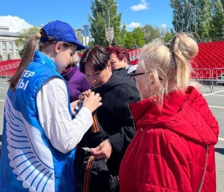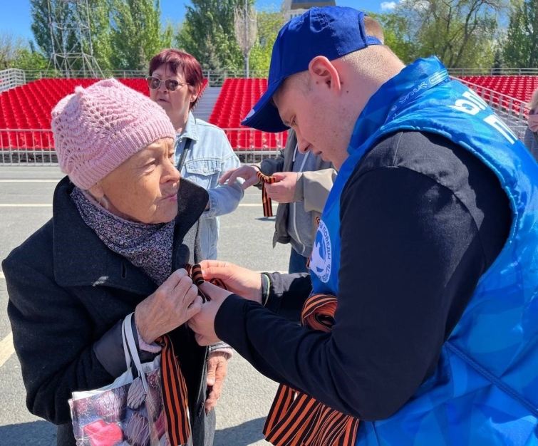 На встречу Первомая пришли более 13 тысяч человек, а Волонтёры Победы предлагали гостям праздника принять участие во Всероссийской акции «Георгиевская лента».