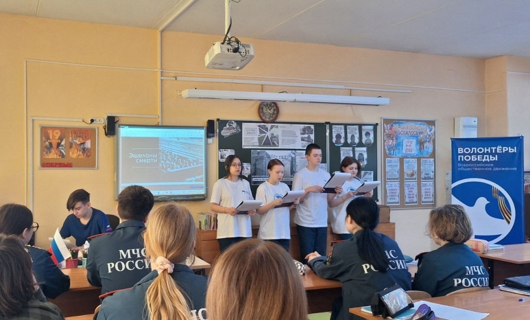 С целью сохранения исторической памяти о жертвах нацистских преступлений, Волонтёры Победы города Полярный провели для 9В класса урок памяти под названием «Войной испепелённые года». В ходе мероприятия девятиклассникам рассказали о событиях войны, фактах массового уничтожения мирного населения фашистами, а также о детских концлагерях, созданных на оккупированных территориях Советского Союза. Ребята узнали о понятии «геноцид» и о трагедии, которая постигла мирное население СССР в период войны. Также были показаны видеоматериалы, рассказывающие о зловещих преступлениях нацистов против мирных жителей.
