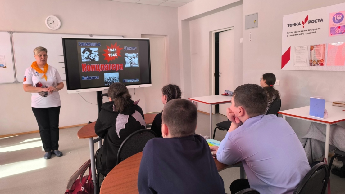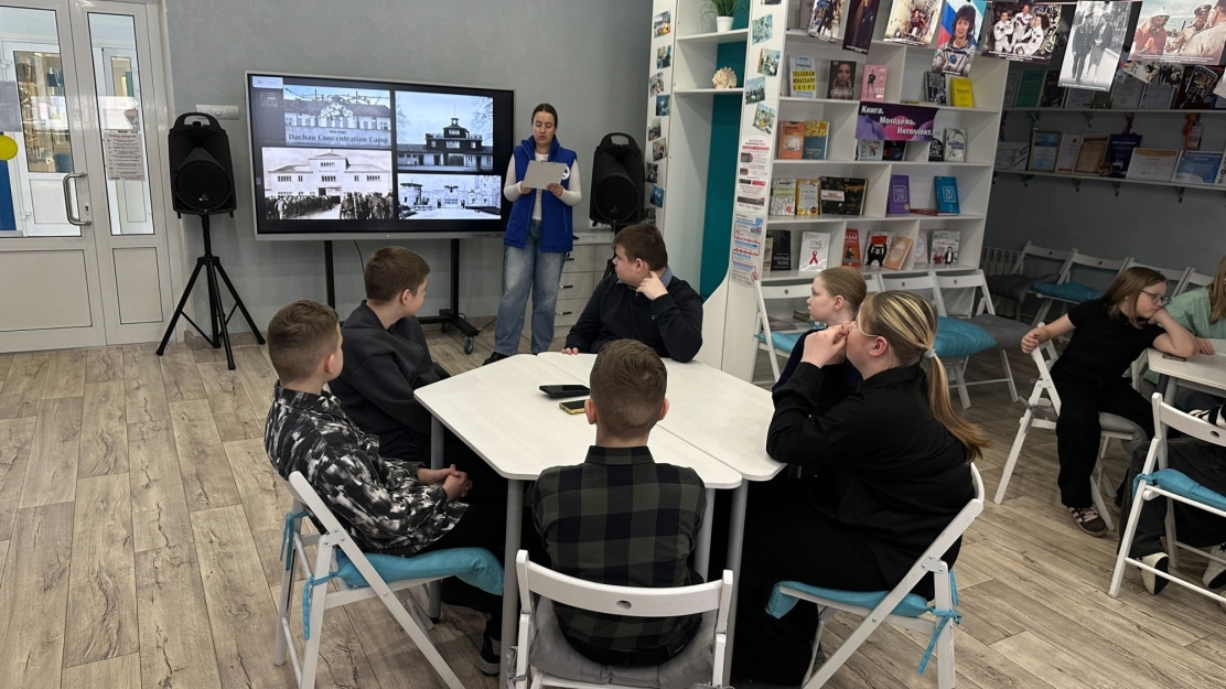 В молодёжном пространстве «СОПКИ» Волонтёры Победы Кольского района провели урок мужества «Об этом нельзя забывать!» для ребят из Кольской школы. Молодёжь узнала о страшных событиях этого периода, о зверствах фашистского режима и судьбах миллионов людей, прошедших через «лагеря смерти».