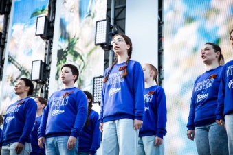 Народный хор из 100 человек исполнил песню «День Победы» на концерте-фестивале «Военные песни у Кремля», который прошел на Нижневолжской набережной в Нижнем Новгороде.