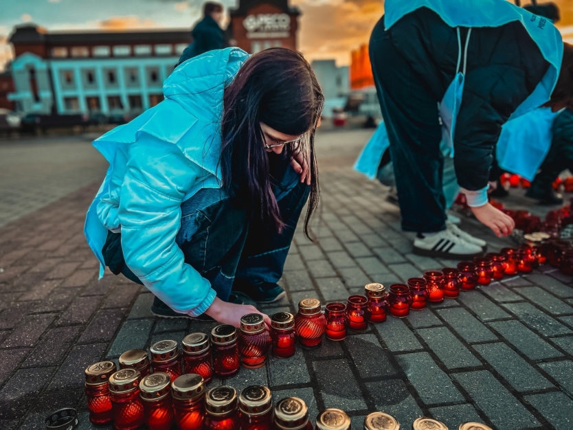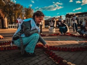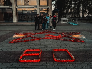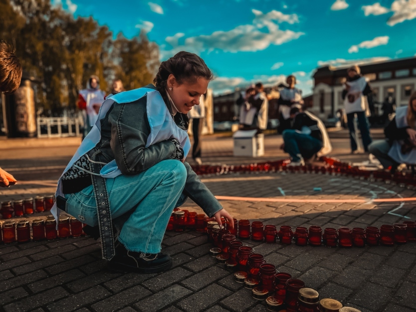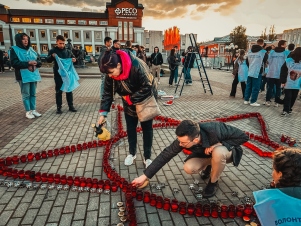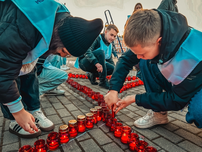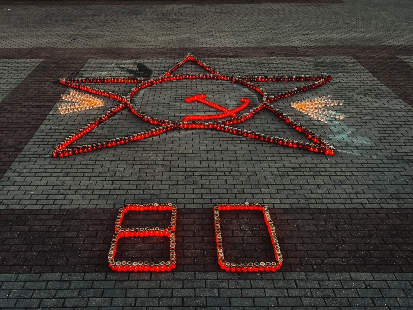 Волонтёры зажгли сотни лампадок и выложили их в форме ордена Красной звезды. Этот орден символизирует доблесть, отвагу и самоотверженность, напоминая нам о подвиге советского народа в годы Великой Отечественной войны и о тех, кто защищал нашу страну в мирное время.