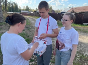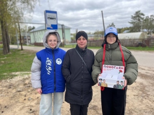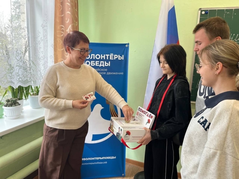 Волонтёры Победы Асерховской школы вышли предложить односельчанам приобрести значки с изображением гвоздики в обмен на пожертвования.