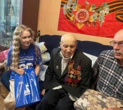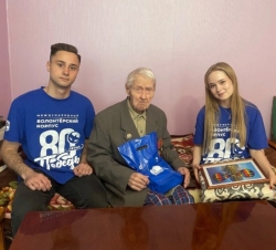 Добровольцы поздравили с наступающим 80-летием Великой Победы и участника Великой Отечественной войны Николая Яковлевича Истомина. Николаю Яковлевичу - 98 лет! Этот человек - легенда! Он прошёл через тяжелейшие испытания войны и внес огромный вклад в нашу общую Победу. Ребята пришли к Николаю Яковлевичу домой, чтобы выразить ему свою благодарность, уважение и восхищение. Они вручили ветерану подарки и, конечно же, сказали самые тёплые слова признательности за его подвиг.