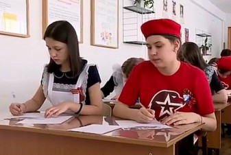 Участниками акции стали учащиеся 5-11 классов. Девочка, учащаяся в начальной школе, прочла отрывок из произведения Роберта Рождественского «Помните».