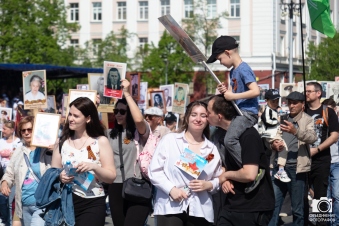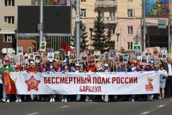 В день празднования юбилея Победы в Барнауле после двухлетнего перерыва прошло народное шествие «Бессмертный полк». Пронести портреты своих Героев пришли свыше 30 тысяч человек. На протяжении всего маршрута рядом с участниками были Волонтёры Победы, ставшие соорганизаторами шествия. 600 добровольцев формировали колонны шествия, следили за безопасностью граждан, а главное – дарили всем праздничное настроение.