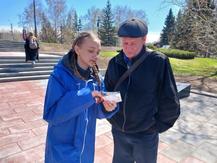 В преддверии Дня Победы Волонтёры Победы дали старт акции «Георгиевская лента» в Алтайском крае. 24 апреля Волонтёры Победы вышли на ключевые точки города Барнаула: Нулевой километр, Площадь Победы и Ленинградскую аллею, чтобы раздать символ воинской славы всем желающим и рассказать об его истории и значении жителям и гостям краевой столицы. Вместе с Георгиевской лентой добровольцы предлагают взять с собой листовку, чтобы ознакомиться с рекомендациями по ношению ленты и быть готовым к 80-й годовщине Великой Победы.