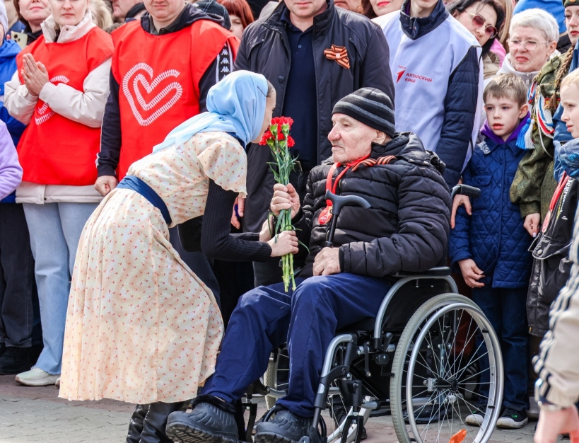 «Практически накануне Дня Победы, на Барнаульском железнодорожном вокзале мы встретили Эшелон Победы. И это очень символично, ведь именно с этой платформы 80 лет назад на фронт уходили наши деды и прадеды. И сегодня, когда Волонтёры Победы дежурили рядом с эшелоном, раздавали Георгиевские ленты, сопровождали пожилых гостей мероприятия, то они, конечно, думали о своих предках – Героях Великой Отечественной войны, вспоминали их доблесть и мужество!», – рассказал Кирилл Крюков, куратор по взаимодействию с ветеранскими сообществами Международного волонтёрского корпуса 80-летия Победы.