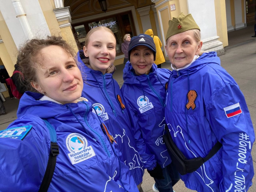 Сегодня Волонтёры Победы дали старт ежегодной международной акции «Георгиевская лента» у станции метро «Гостиный двор».