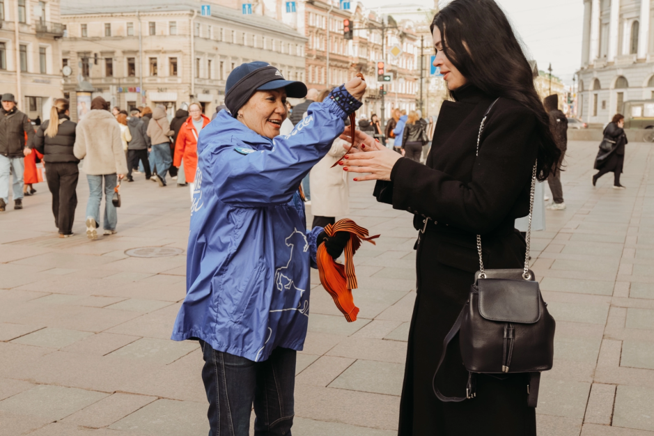 Акция «Георгиевская лента» в городе Санкт-Петербурге пройдёт около всех станций метрополитена 6 и 8 мая с 17:00 до 19:00. Кроме того, оранжево-чёрную ленту можно получить на региональных патриотических мероприятиях. Волонтёров Победы можно будет узнать по ярко-синей форме.