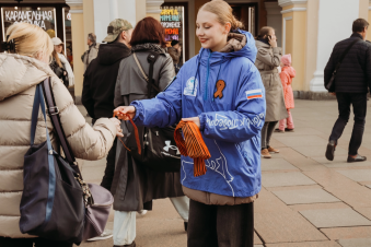 Международная акция «Георгиевская лента» пройдёт с 24 апреля по 9 мая. Миллионы лент будут переданы из рук в руки силами Волонтёров Победы на улицах более чем 2500 населённых пунктов.