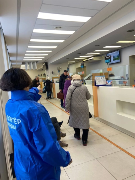 Наши добровольцы встречают и сопровождают ветеранов Великой Отечественной войны в офисе компании «Аэрофлот», чтобы сделать процесс оформления билетов максимально комфортным.