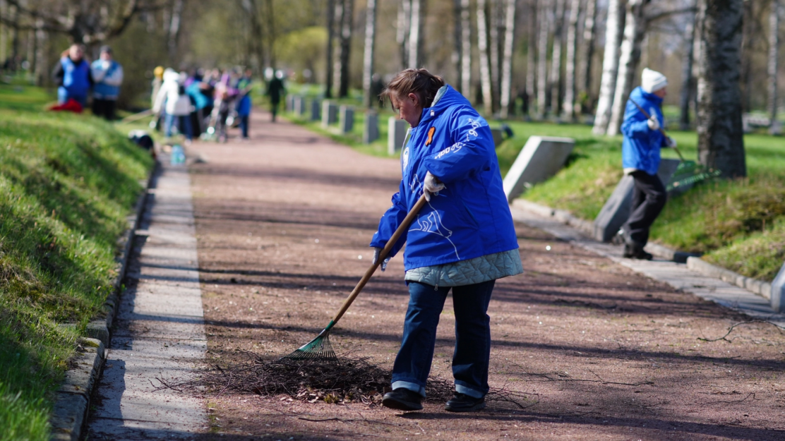 Волонтёры Победы привели в порядок аллеи воинских захоронений. В память о защитниках Ленинграда возложили цветы к мемориалу «Мать-Родина».