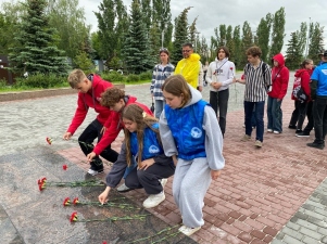 «Мы прошли по тихим аллеям парка, где каждая тропинка, каждый памятник дышат историей. Возложили алые гвоздики к подножию величественного мемориала «Журавли» и Вечному огню — символам бессмертного подвига саратовцев, отдавших жизни за Родину», - рассказали волонтёры.