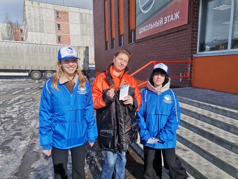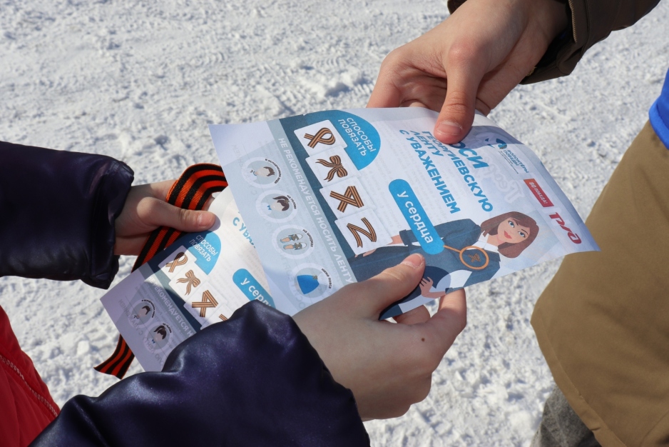 Вместе с Георгиевской лентой добровольцы предлагали взять с собой листовку, чтобы ознакомиться с рекомендациями по ношению ленты и быть готовым к 80-й годовщине Великой Победы.