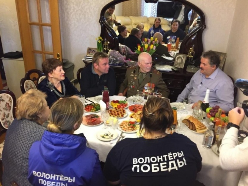 В рамках региональной акции «Герои Подмосковья» Волонтёры Победы в Балашихе, совместно с летчиком-космонавтом, Героем Российской Федерации Максимом Сураевым и региональным координатором направления «Связь Поколений» Светланой Колтовских поздравили с Днём Защитника Отечества ветерана Великой Отечественной войны, участника боевых действий - Александра Ивановича.