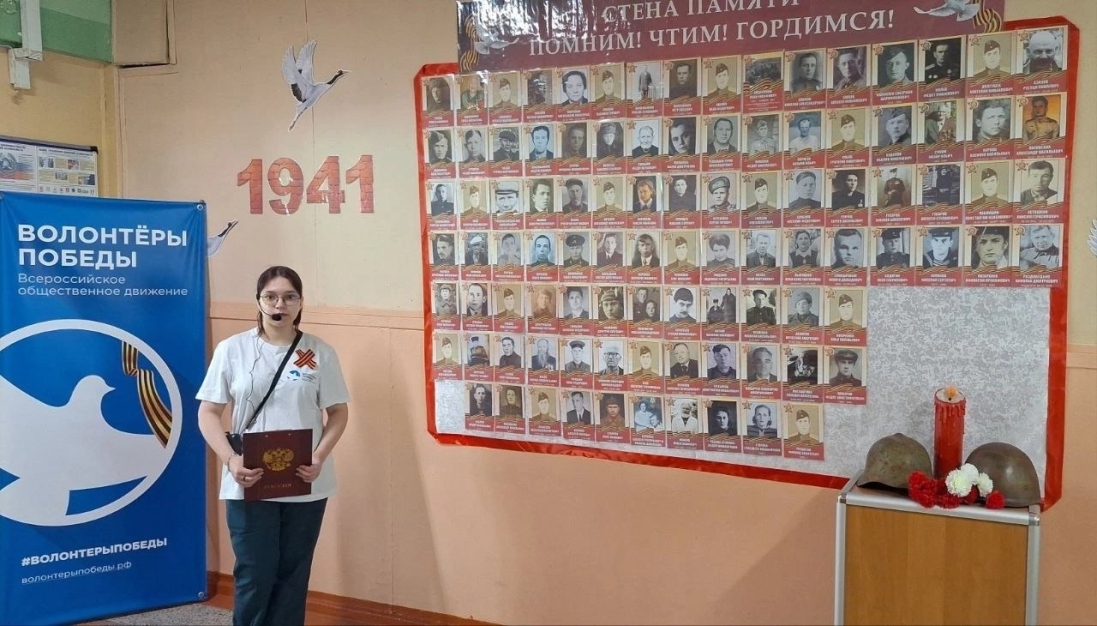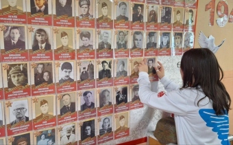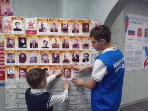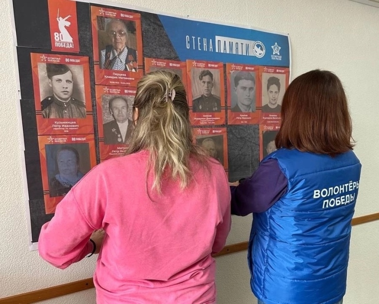 волонтёрского корпуса 80-летия Победы, образовательных учреждениях, молодежных и социальных центрах установлены специальные стенды, на которые любой желающий смог прикрепить портрет своего Героя с его ФИО и годами жизни.