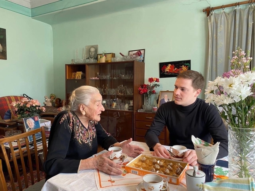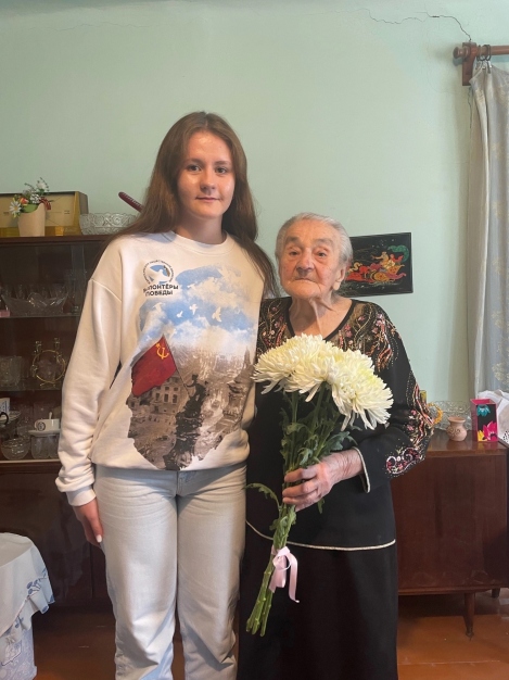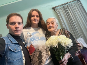 Добровольцы душевно пообщались с Надеждой Николаевной, узнали о её самочувствии и новостях, а также поздравили Героя с наступающим Днём Победы!