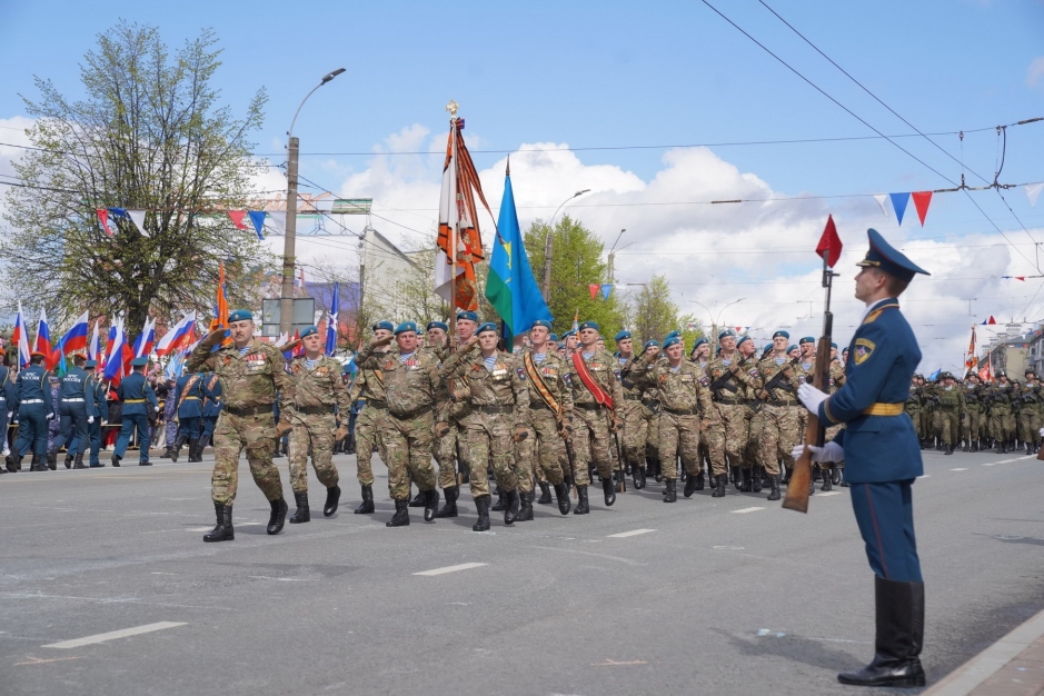 В торжественном шествии войск приняли участие парадные расчеты воинов-десантников, ракетчиков, авиаторов, личный состав управления службы судебных приставов, офицеры, а также курсанты, рота почетного караула, духовой оркестр и группа барабанщиц пожарно-спасательной академии.