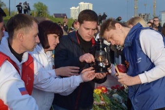В ходе мероприятия жители и гости города почтили память павших героев минутой молчания. В завершении мероприятия активисты Общероссийского народного фронта передали через Волонтёров Победы каждому участнику акции частичку пламени, зажженного от вечного огня у Кремлевской стены в Александровском саду. Вместе взрослые и дети в память обо всех навернувшихся с полей сражений выложили из горящих свечей символы победы – орден Отечественной войны и слово «ПОМНИМ».