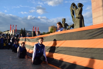 Кроме того, каждый участник патриотической акции в завершении мероприятия смог получить символ воинской доблести и славы - Георгиевскую ленту - и поддержать участников патриотического мотопробега, который прошел по центральным улицам города.