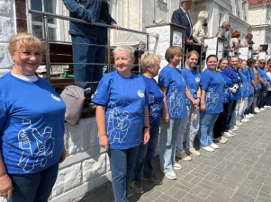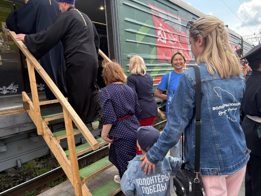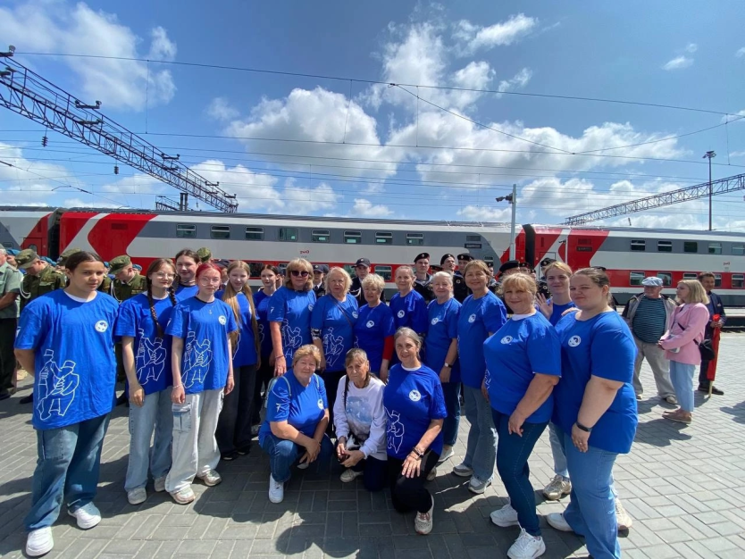 Наши добровольцы оказывали сопровождение экскурсионных групп в вагонах, помогали в раздаче каши и навигации жителей города!