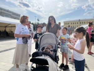 Одной из ключевых площадок стала Советская площадь в столице республики. Волонтеры Победы раздавали ленты у памятника Герою Российской Федерации генерал-майору Минигали Шаймуратову, а также поздравили жителей города с наступающим Днем России.