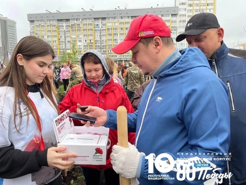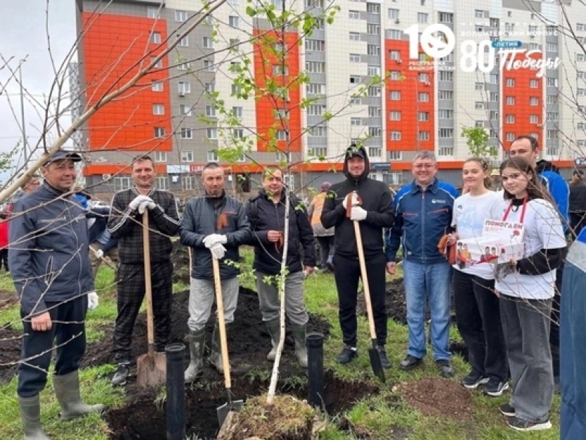 Волонтёры Победы Стерлитамака активно участвовали в организации мероприятия, не только высаживая деревья, но и проводя акцию «Красная гвоздика», раздавая георгиевские ленты жителям.
