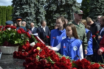 В церемонии возложения приняли участие врио губернатора Курской области Александр Хинштейн, представители городских и областных структур, Волонтёры Победы, члены молодёжных и ветеранских организаций, командиры воинских частей, ветераны и жители города.