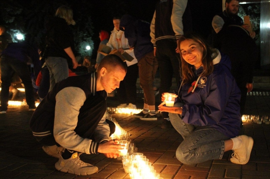 В городах-героях, городах воинской славы и городах трудовой доблести зажглись живые полотна памяти. Из сотен и тысяч свечей добровольцы и неравнодушные сердца сотворили огненные картины, воплощающие трагическое и героическое начало Великой Отечественной войны.