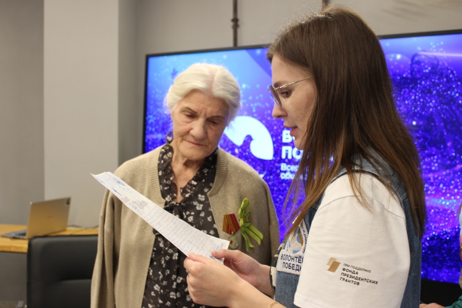 В конце встречи руководитель «Волонтёров Победы» Дарья Терёхина вручила Дине Владимировне Письмо Победы, которое для неё написала участница Международного образовательного форума «Наследники Победы» Милена Мкртчян из Республики Армения. Тёплые слова благодарности к ветерану стали трогательным и приятным моментом завершения встречи.