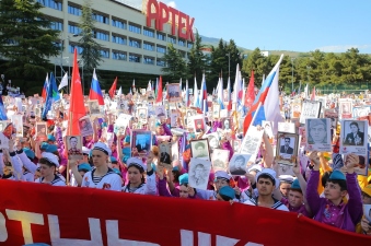 -прошли в живой колонне «Бессмертного полка», в которой приняли участие 4 тысячи потомков Героев из разных регионов России и зарубежных стран.
