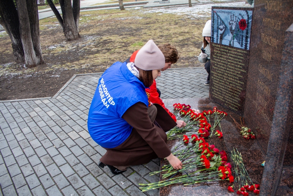 Сегодня Волонтёры Победы провели церемонию возложения цветов, приуроченную ко Дню единых действий в память о геноциде советского народа нацистами и их пособниками в годы Великой Отечественной войны.