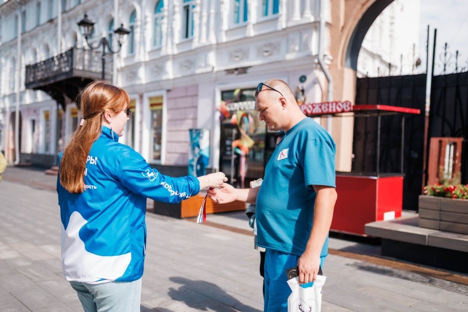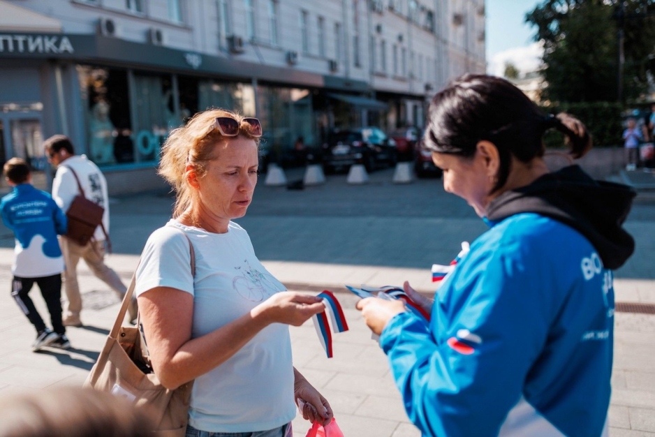 Волонтёры не просто вручали символичные триколоры, но и проводили краткие просветительские беседы, рассказывая об истории одного из главных государственных символов и о значении его цветов.
