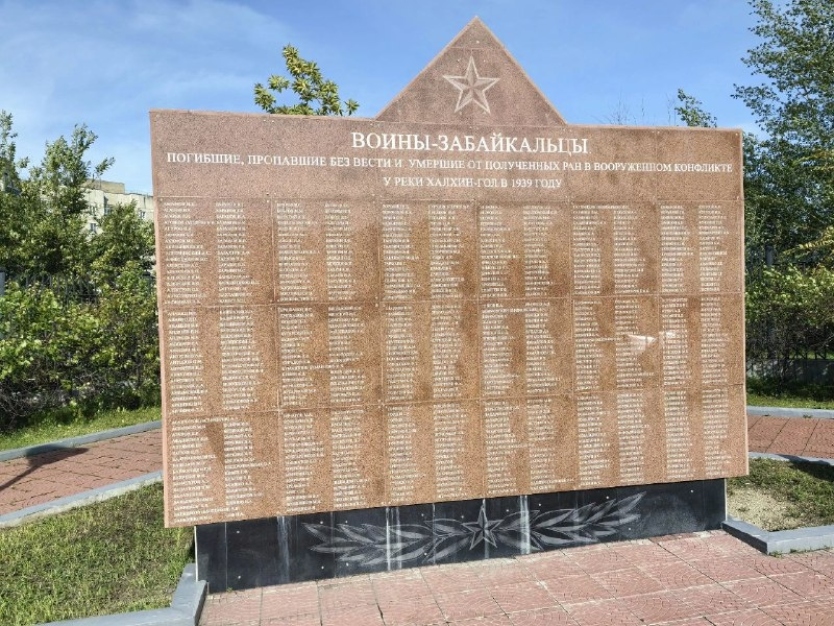 Этот мемориал, открытый в 2009 году, является уникальным для России. Он представляет собой целый комплекс, на территории которого находится братская могила солдат, умерших в читинских госпиталях от ран, полученных в сражениях у реки Халхин-Гол. На мраморных плитах мемориала увековечены имена 588 забайкальцев, отдавших свои жизни за Родину.