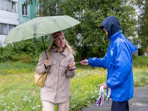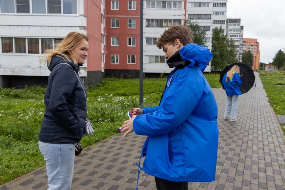 На главных улицах, площадях, парков и скверов городов и посёлках Мурманской области Волонтёры Победы разместились в удобных местах, привлекательных для большого потока людей. Здесь, в специально подготовленных зонах, они предлагали жителям региона яркие ленты в традиционных цветах российского триколора. Любой желающий мог получить такую ленту и присоединиться к массовой акции, посвящённой Дню Государственного флага России.