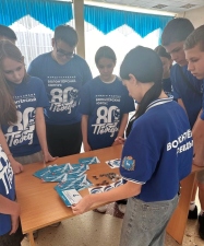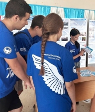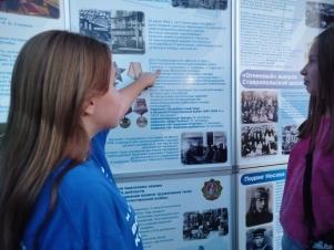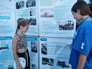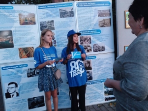 Ребята знакомили всех желающих со стендами выставки «Память, которая нас объединяет» и проводили историческую викторину.
