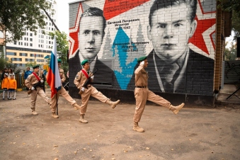 Арт-объект на стене трансформаторной подстанции, расположенной на улице, носящей имя героев, в Советском районе Нижнего Новгорода, символично связал прошлое и настоящее. В церемонии приняли участие председатель Думы Нижнего Новгорода Евгений Чинцов, заместитель главы администрации Советского района Роман Ознобишин, Волонтёры Победы, юнармейцы школы №181 Нижнего Новгорода и активисты «Движения Первых».