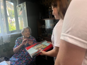 Волонтёры провели с Альбиной Васильевной тёплый, душевный разговор. Она поделилась воспоминаниями о тяжелых военных годах, а также рассказала о своей молодости и жизни в послевоенное время.