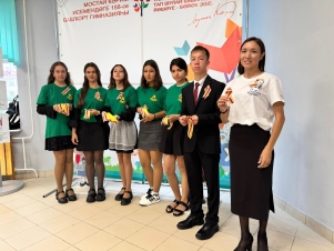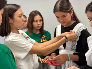 Волонтёрский отряд «Прометей» МАОУ «Башкирская гимназия №158 имени Мустая Карим» присоединился к патриотический акции «Дальневосточная Победа», в рамках которой раздавали учащимся муаровые ленты.