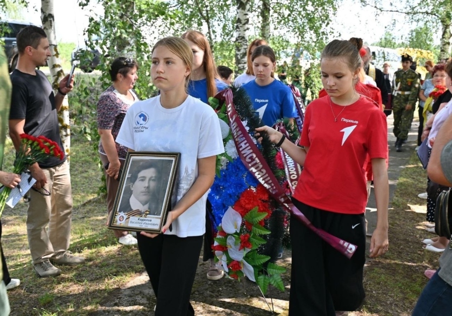 Останки уроженца Ивановской области, рядового 52-й стрелковой дивизии были найдены ивановским и тверским поисковыми отрядами в ходе осенней экспедиции 2024 года. Установить личность красноармейца удалось по сохранившемуся медальону. Поисковики не только идентифицировали останки, но и нашли родственников Василия Ивановича Кадилова, внучка и правнуки которого присутствовали на церемонии.