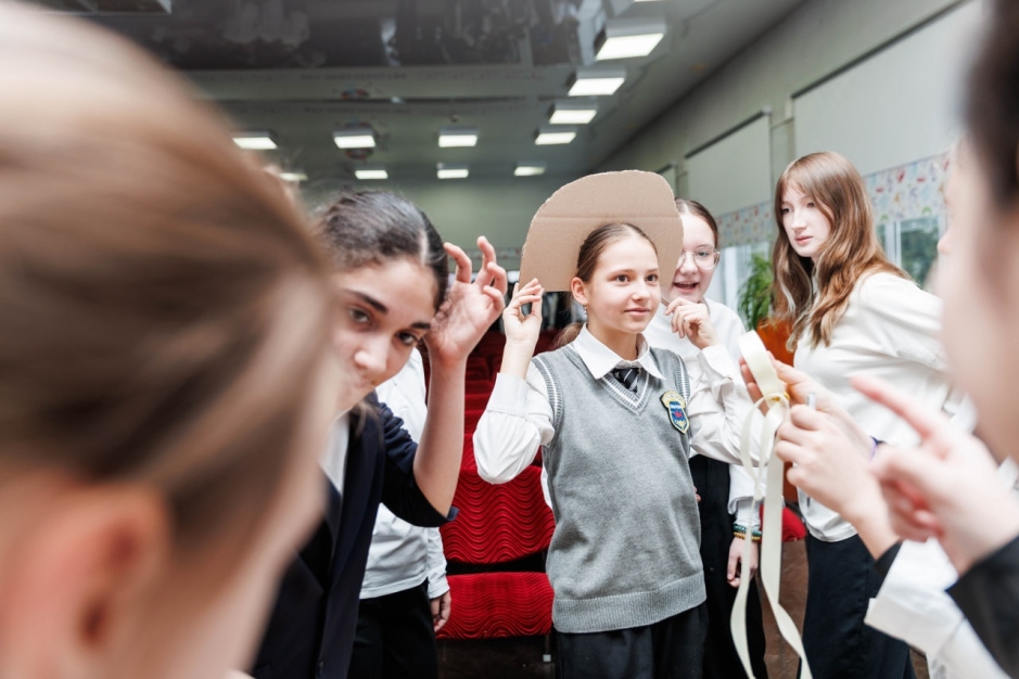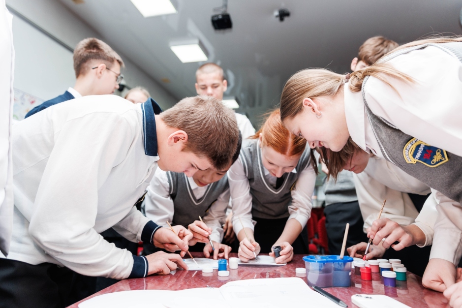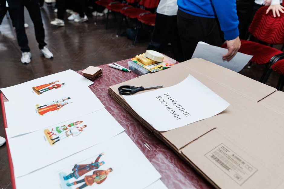 Одним из самых ярких этапов игры стал конкурс на знание художественной росписи. Команды коллективно расписывали блюдца в стиле выбранных народных промыслов. Также гимназисты выполняли задание, посвященное национальным костюмам. Ребятам рассказали, что самым узнаваемым головным убором на территории России является кокошник. Командам было предложено своими руками создать три кокошника, украсив их подручными материалами.