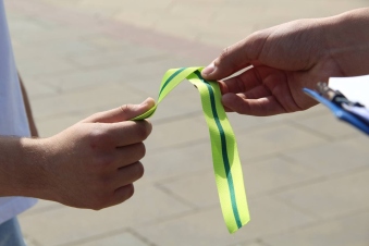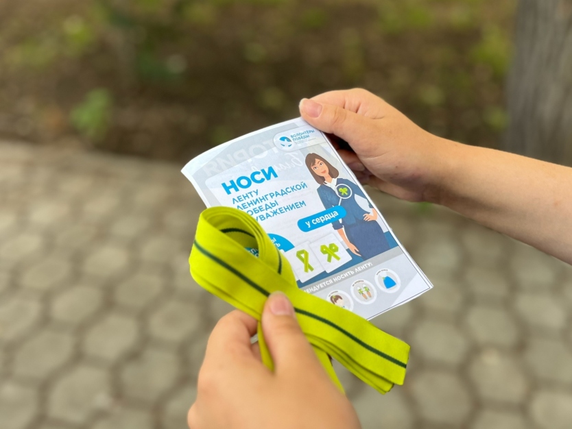 Волонтёры Победы Московской области вышли на улицы города Белоозёрский, чтобы напомнить и детям, и взрослым о подвиге жителей и защитников блокадного Ленинграда в годы Великой Отечественной войны и подарить ленту Ленинградской Победы, которая является символом окончания Ленинградской битвы. Оливковый цвет ленточки символизирует Победу, а зелёный — цвет жизни. Они также повторяют цвета колодки медали «За оборону Ленинграда».